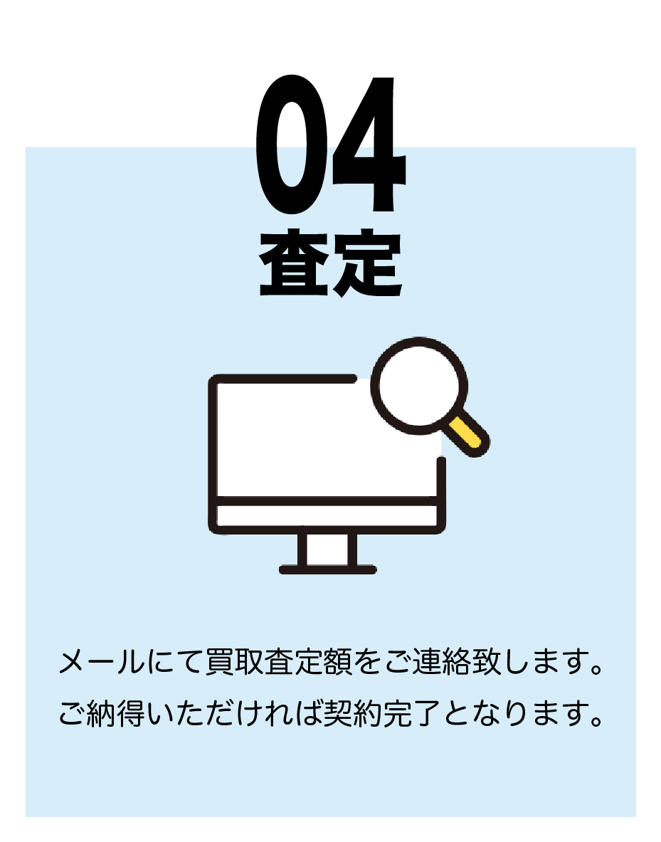 買取の経験豊富なスタッフが、迅速かつ丁寧に査定いたします。買取査定は無料です。お気軽にお申し込みください。